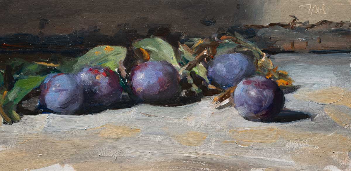 Hedgerow plums a daily painting by Julian Merrow-Smith