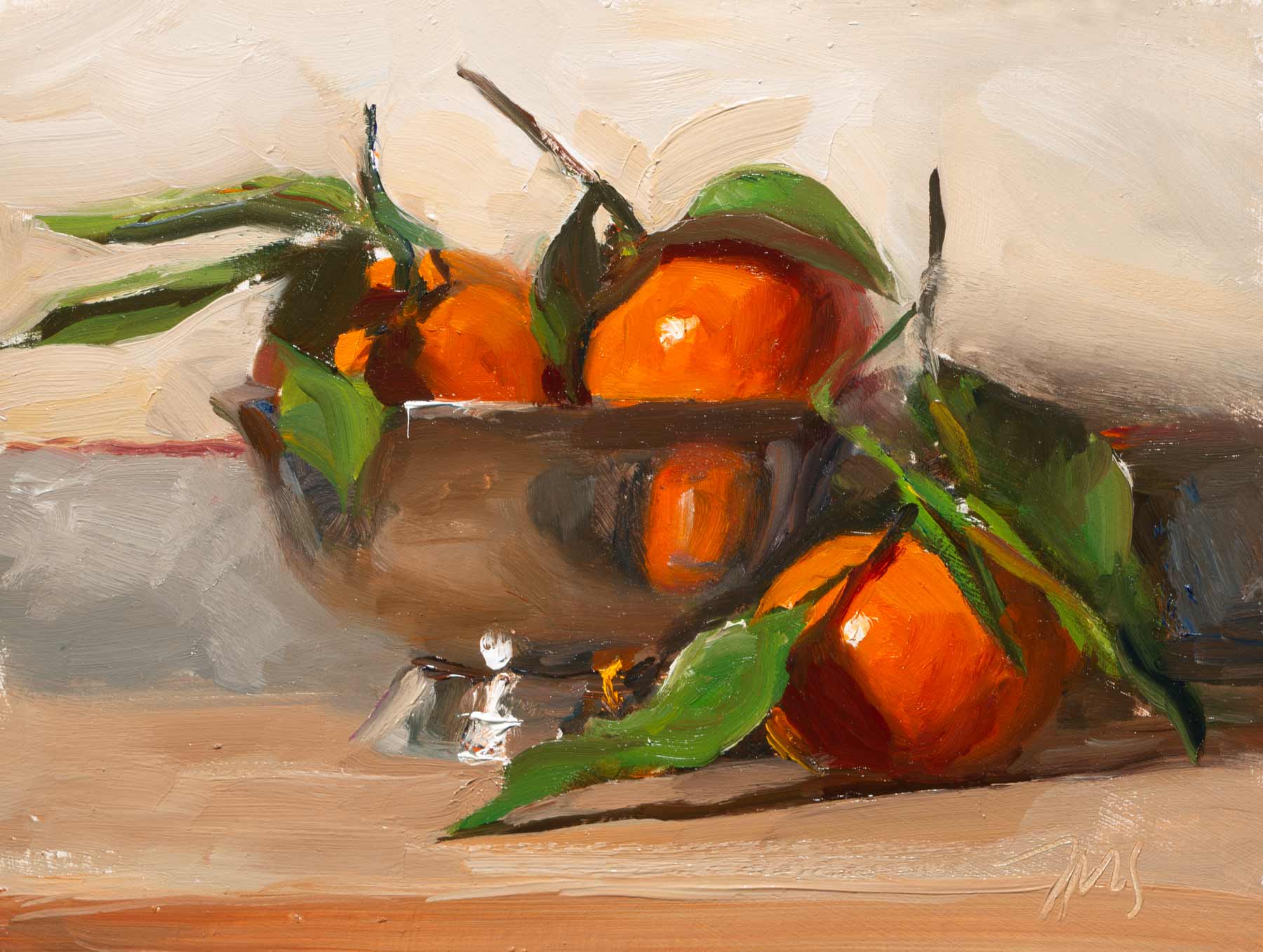 Clementines and silver bowl a daily painting by Julian Merrow-Smith