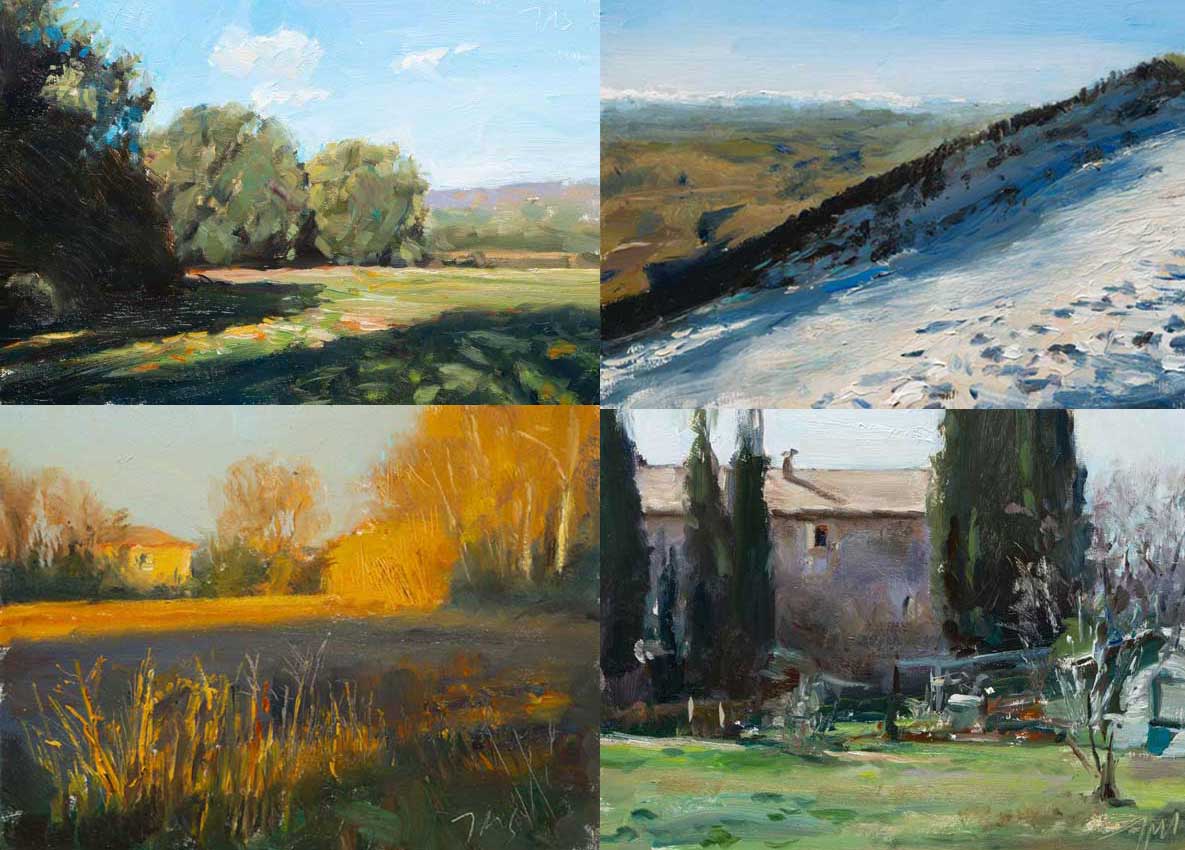 Four Landscape paintings a daily painting by Julian Merrow-Smith